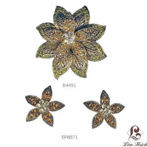 Georgian Austrian Crystal Rhinestone Gold Tone Floral Pin Brooch